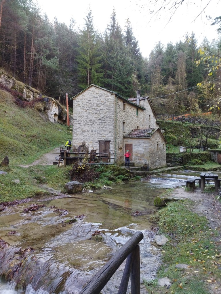 La salita prosegue dolcemente su asfalto finché, giunti a Fiumicello, si fa una breve deviazione per andare ad ammirare il Mulino Mengozzi, un vecchio mulino completamente restaurato e rimesso in grado di funzionare.