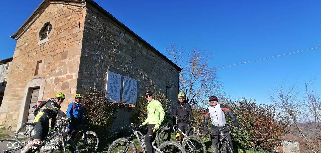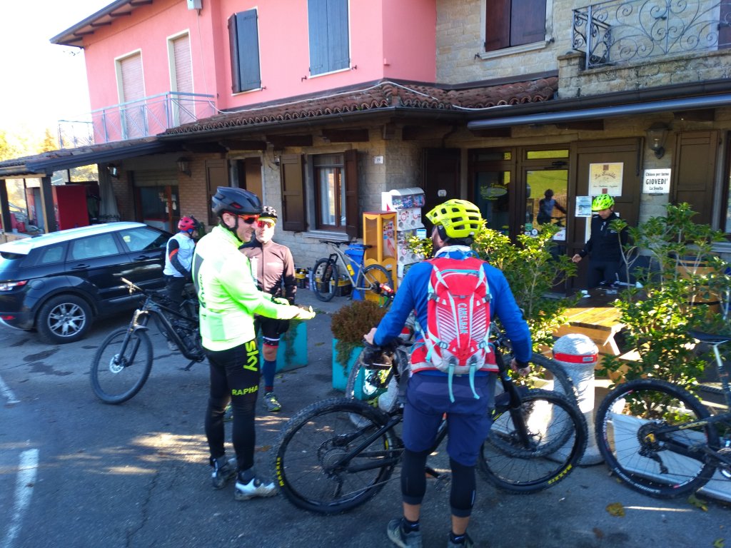 Dopo questo meritato recupero risaliamo in bici affrontando un pezzo della salita verso monte Fosola, ma prima di fare l’ultimo strappo scendiamo a sinistra dirigendoci verso Campovecchio per poi scendere fino al Cigarello. Adesso non rimane che fare l’ultima salita per ritornare alla partenza. Alla fine abbiamo percorso una cinquantina di km con 1500mt +. Compagnia sempre ottima!!
