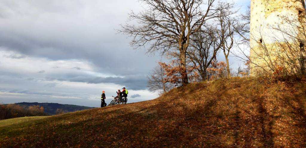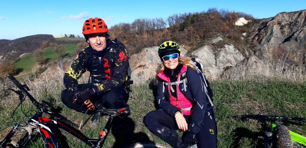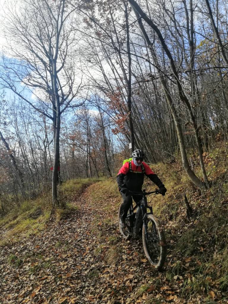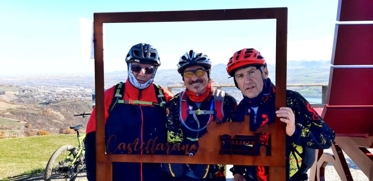 Siamo partiti da Rondinara con l’idea di raggiungere Baiso sfruttando piccole strade asfaltate. Per non infangarci, visto le piogge dei gioni precedenti… Dopo qualche km di bitume però il senso di disagio cresceva in noi, ci siamo ricordati di chiamarci Off Road ! E allora via a pedalare su una carrareccia argillosa x raggiungere la panchina di monte Malee, sopra Castellarano. Superato senza problemi questo tratto fuoristrada ci siamo fatti “ingolosire” e alternando off-road a tratti asfaltati abbiamo raggiunto Baiso dove sul poggio “la balota” è collocata la seconda Big Bench della giornata, panchina ora in clima natalizio contornata da sagome di legno a rappresentare la Natività. Proseguendo abbiamo affrontato due belle discese, la prima sul sentiero cai 632 verso la storica borgata di Cassinago poi quella che dal Monte Lusino scende sulla provinciale a fondovalle. Qualche punto dove sembrava essere sul sapone ha causato apprensione ma, sfruttando le foglie che ricoprivano il fango abbiamo raggiunto sani e salvi il paese di Viano. La salita che porta sù al castello è stato l’ultimo sforzo prima di concludere la nostra escursione tra panchine, castelli e panorami mozzafiato. (42 km – 1380 metri di dislivello)