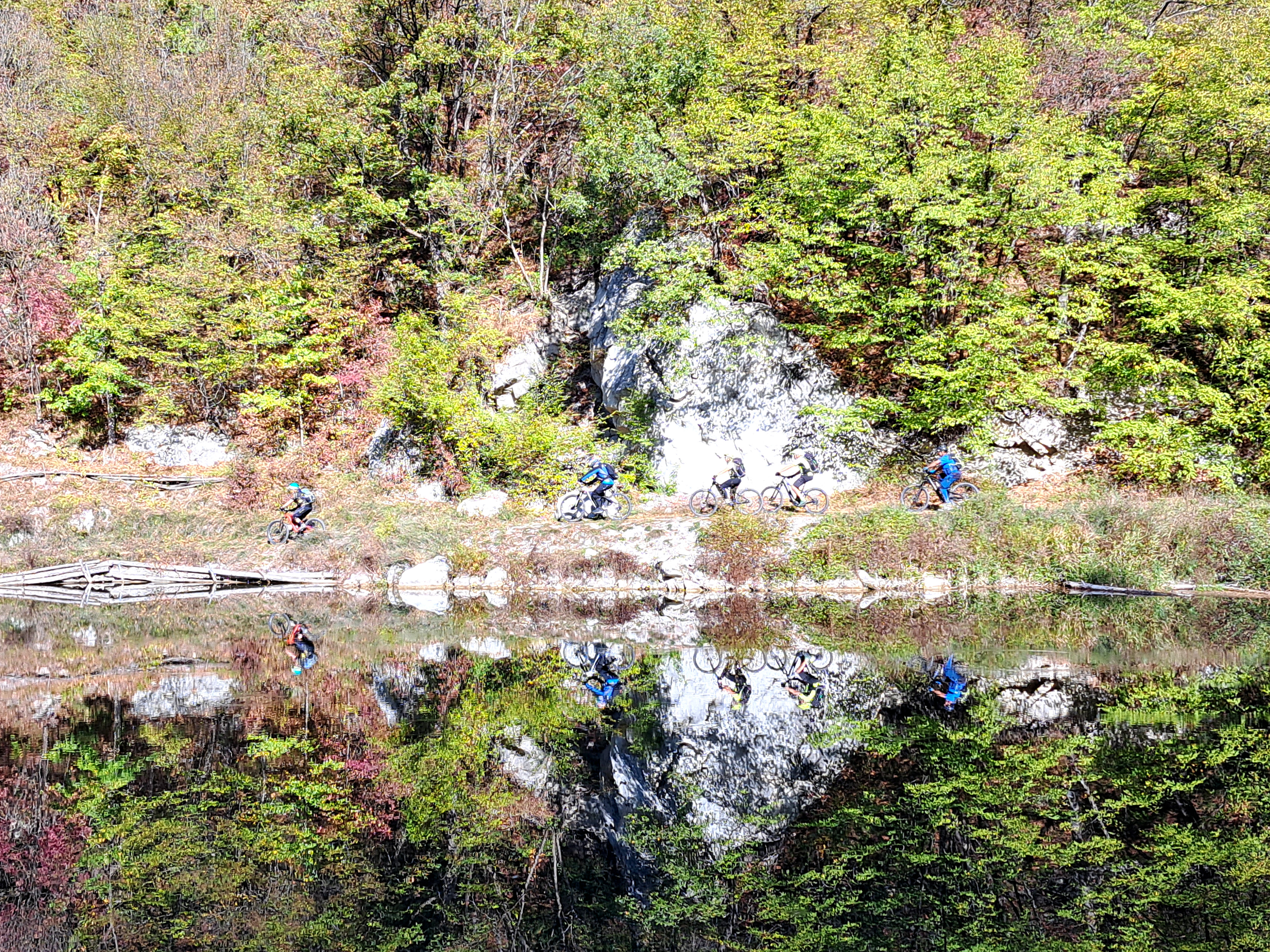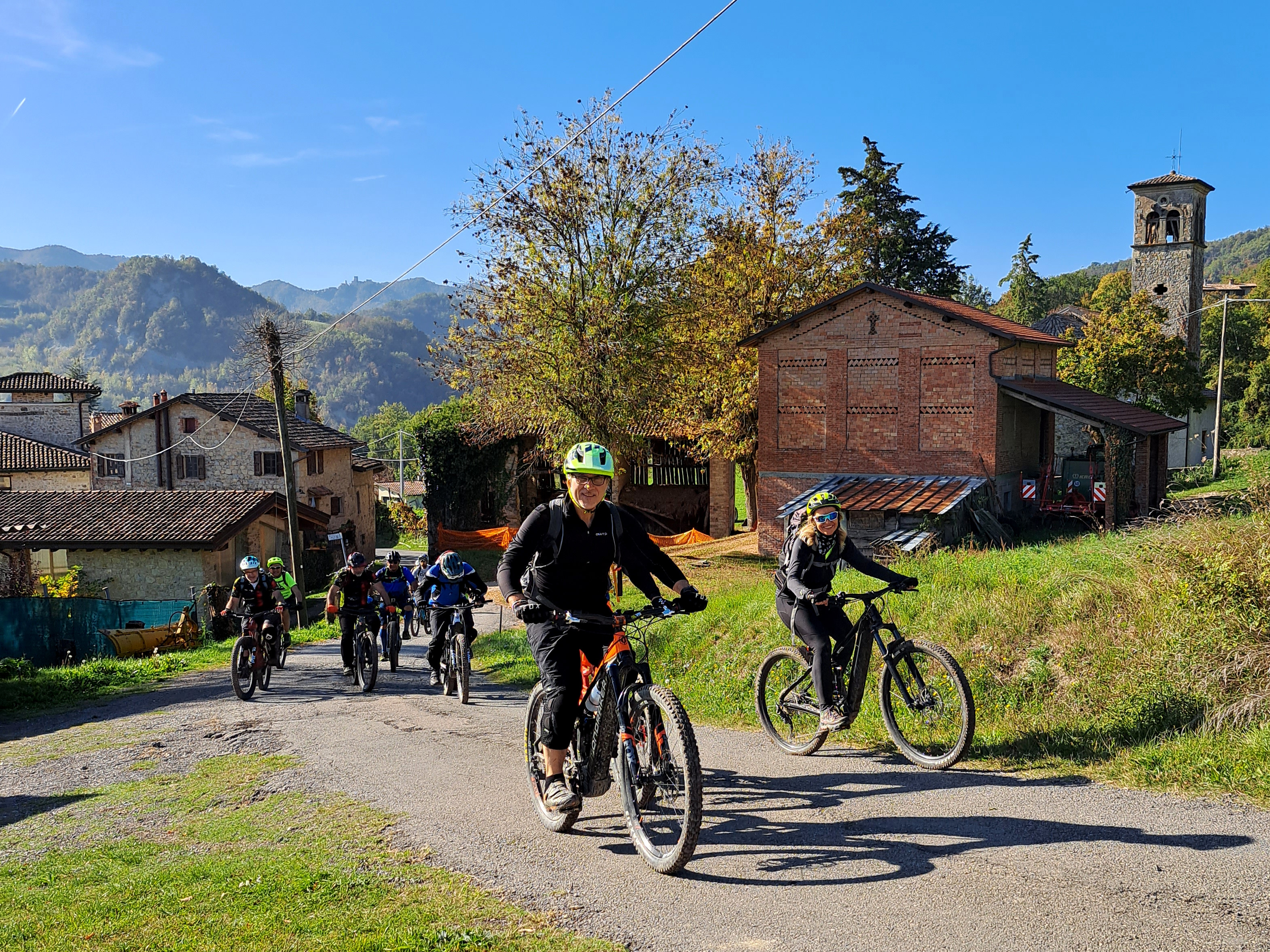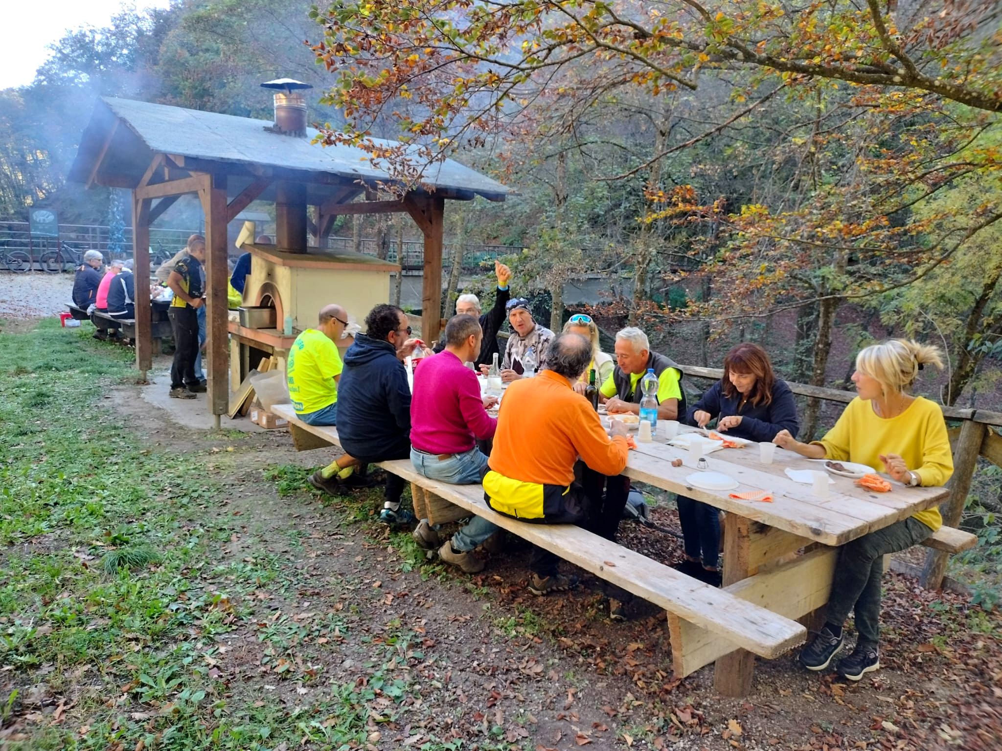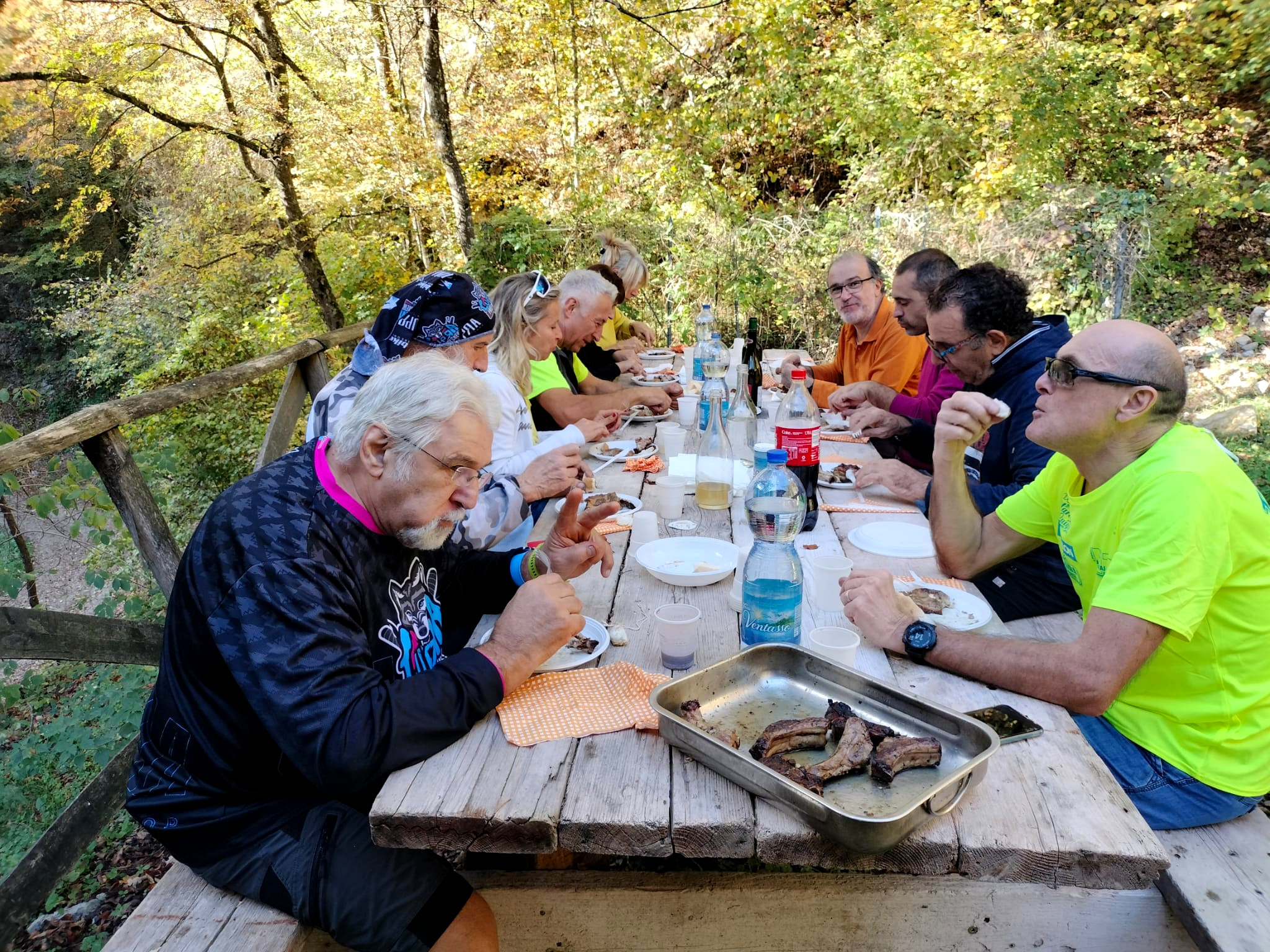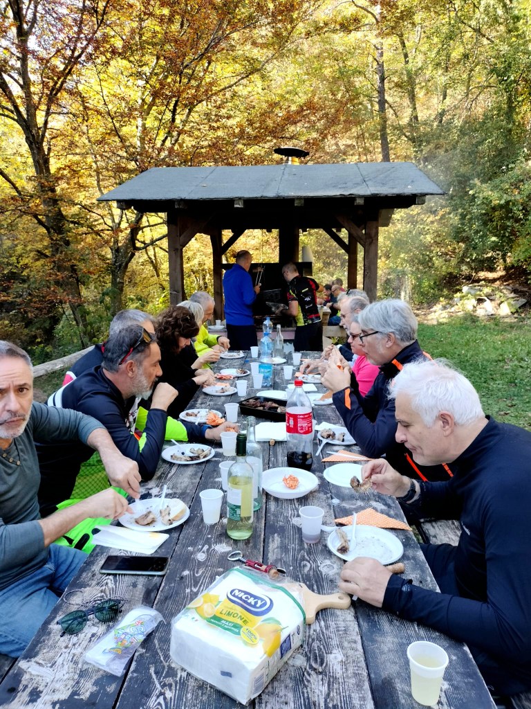 Il giro con la grigliata è, unitamente alla Transappenninica , il momento che vede la maggior partecipazione dei soci Off Road. Quest’anno il Lago dei Pini è stata la nostra base di partenza per un giro ad anello tra le colline della “contea” di Casina , escursione di 25 km e con poco più di 1000 metri di dislivello. Con questi dati, secondo le antiche regole di Off Road ( minimo 30 km e almeno 1000 metri di dislivello) l’escursione non può essere omolologata come giro serio…. Si poteva fare di più ma l’obbiettivo odierno era girare vicino alla griglia , per essere pronti quando il fumo e il profumo della “ciccia” avesse invaso la piccola valle del lago dei Pini. Guidati da Robby con il giro, anzi con la “passeggiata” siamo saliti ai borghi di Valcava e di Croveglia per poi scendere nella valle del Torrente Tresinaro e alla Cascata delle Vene. Poi tanti su e giù passando x Onfiano (pausa caffè), Giandeto, Lago del Tasso e il Monte delle Tane dove, guidati ora dal profumo, con una veloce discesa abbiamo raggiunto il luogo di partenza. Un bel giretto, l’unico difetto il passaggio all’interno di una battuta di caccia al cinghiale. A me un po’ ha infastidito, forse condizionato da un libro che stò leggendo (La finocchiona a pedali) : Un giallo ambientato nella zona del chianti dove il comandante della locale stazione dei carabinieri stà indagando sulla morte, in diversi momenti, di quattro ciclisti: Tutti impallinati e tutti con la maglia dell’Eroica. Ma questa è un’altra storia ; comunque i “cinghialai” che abbiamo incontrato non avevano lo sguardo di chi ti voleva offrire un campari…
