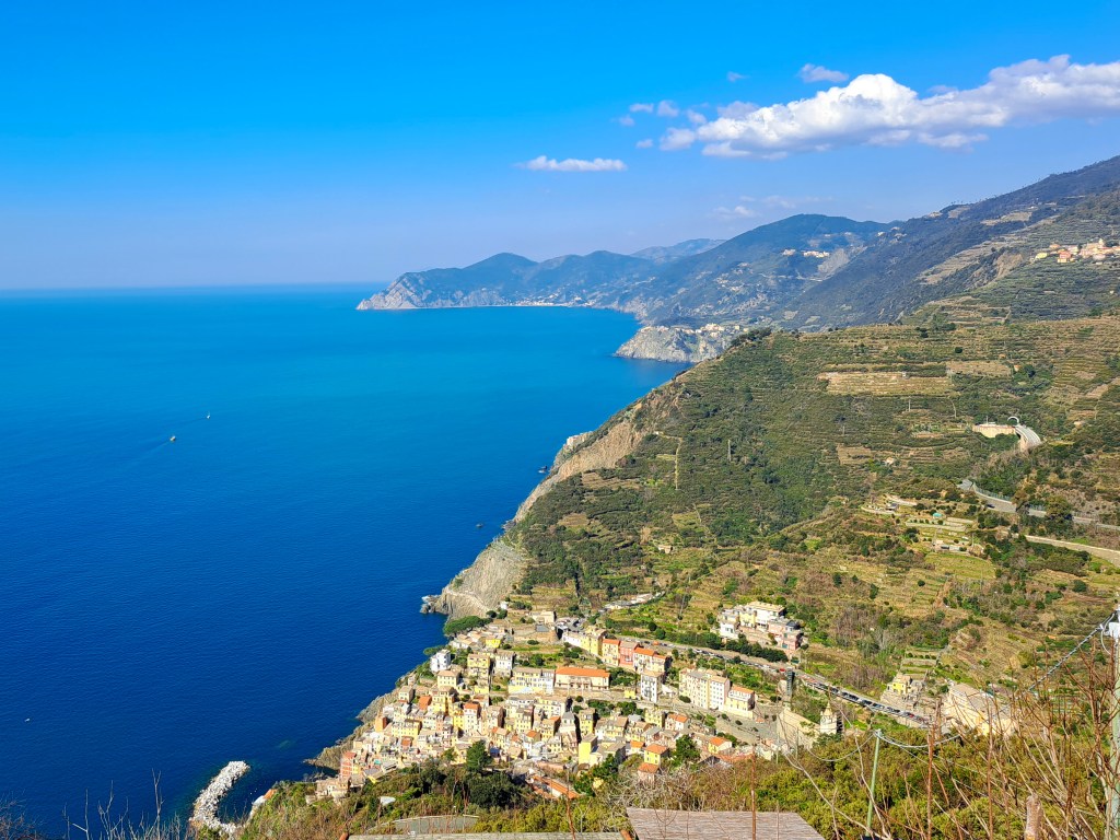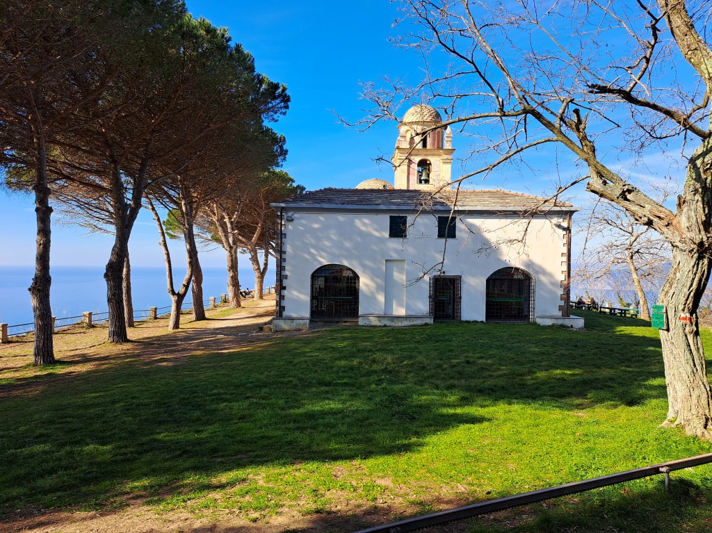 La nostra escursione inizia dal parcheggio (q.160) situato lungo la provinciale 370 delle cinque Terre tra Riomaggiore e Manarola. Percorrendo un tratto della strada provinciale raggiungiamo il tipico paesino di Volastra con i suoi terrazzamenti coltivati che degradano verso il mare. Quì parte una larga forestale che sale fino al Colle del Telegrafo e poi, seguendo una strada attualmente chiusa al traffico, al Bivio di Bramapane (Quota 627 metri). A questo punto abbiamo affrontato la salita più lunga dell’itinerario, 600 metri di dislivello + in 16 km. Lungo questo tratto, poco prima di arrivare al Colle del Telegrafo, con una piccola deviazione (1 km in più e 80 m. di dislivello +) si può raggiungere il Santuario della Madonna di Montenero. Dal piazzale di questo santuario si gode una vista mozzafiato sulla costa dall’Isola Palmaria alla Punta del Mesco e sulle Cinque Terre,